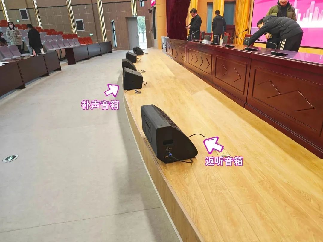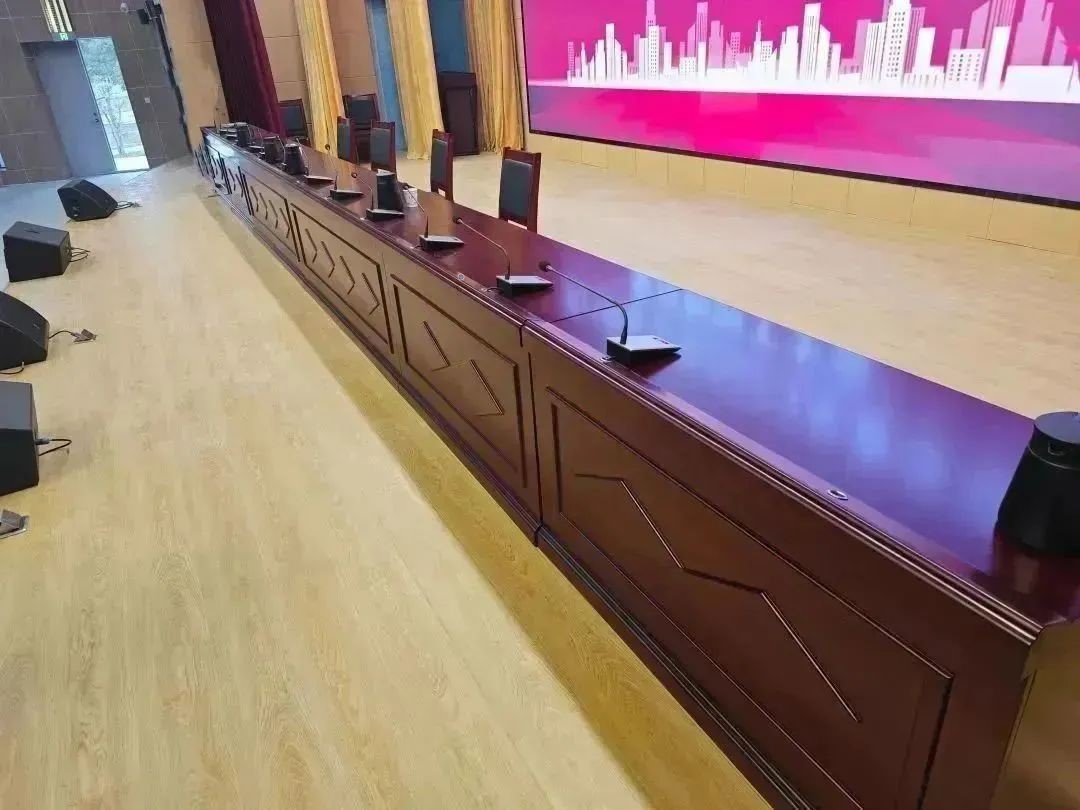 石家庄专业音响工程公司根据现场实际面积,需要实现远距离,大声压的扩声,我们配置了一边六只的线性阵列音箱作为主扩音箱,保证观众席,前场、中场、后场声压均匀覆盖。